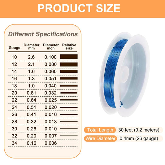 HARFINGTON 30ft Jewelry Wire, 26 Gauge (0.4mm) Brass Craft Soft Metal Tarnish Resistant Copper Beading Wire for Jewelry Making Supplies Crafting, Blue
