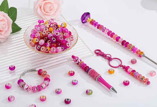 LAIDANLA Rose Mix Large Hole Beads,100pcs 15mm European Large Hole Beads Bulk for Bracelet Pens Jewelry Making Spacer Charms Craft Beads Decoration