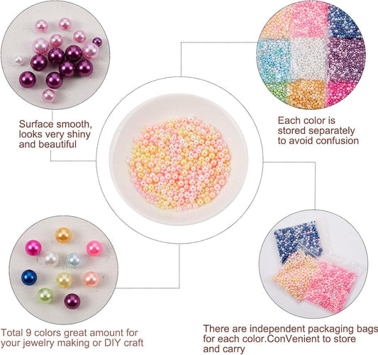 About 1840Pcs 4/6/8mm Glass Pearl Beads Pearlized Beads Multi Colors Round Spacer Beads for DIY Craft Jewelry Making Hole: 1mm, Mixed Purple & Grey & Turquoise