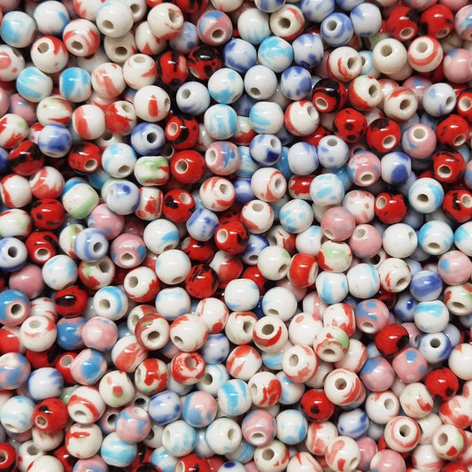INSPIRELLE 180 Pieces Porcelain Beads Chinese NOT-Round Ceramic Beads 8mm for Handmade Jewelry Making Bracelets Necklace Making, Variable Glaze