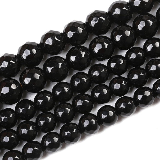 32pcs 12mm Natural Faceted Black Agate Stone Beads for Jewelry Making Energy Healing Beads DIY Bracelet Necklace Accessories 15" (12mm, Faceted Black Agate)