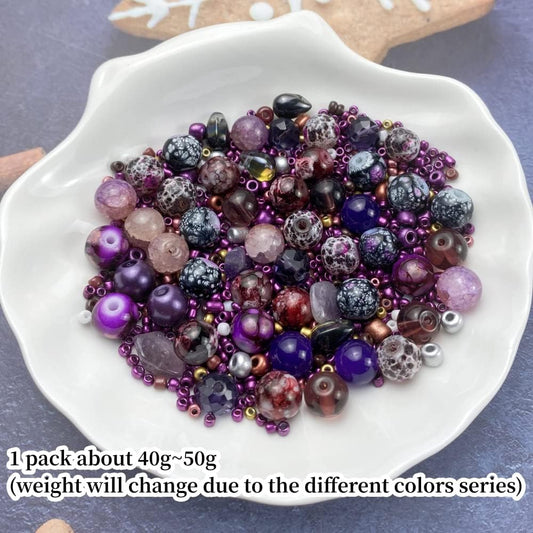 Assorted Glass Resin Beads Multi Size Colors Smooth Cracked Gravel Millet Spacer Beads for Bracelets Necklace Earring DIY Jewelry Making Craft(Deep Purple Series)
