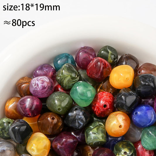 80pcs Acrylic Beads Large Imitation Marble Bead Vintage Colors Beads for Jewelry Making Bracelet Necklace Craft Making Supplies(18 * 19light Color)