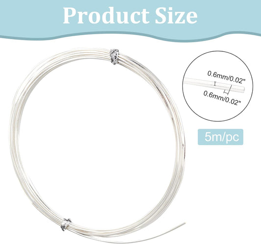 BENECREAT 23 Gauge 16 Feet Silver Square Copper Wire, Bendable Metal Craft Wire for Necklace Bracelet Making and Handmade Project