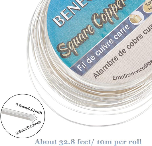 BENECREAT 32.81 Feet 24 Gauge Silver Square Copper Wire, Craft Copper Wire Tarnish Resistant Jewelry Material for Jewelry Making