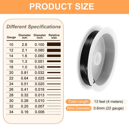 HARFINGTON 13ft Jewelry Wire, 22 Gauge (0.6mm) Brass Craft Soft Metal Tarnish Resistant Copper Beading Wire for Jewelry Making Supplies Crafting, Black