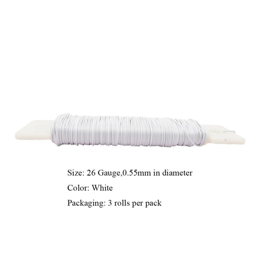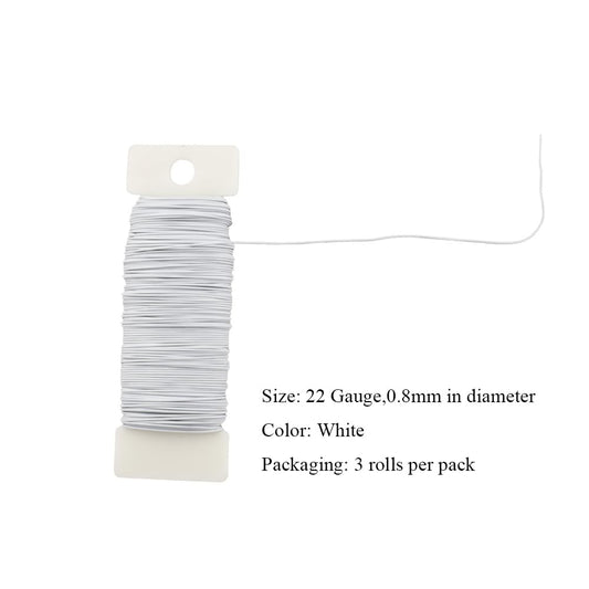 HAHIYO 22Gauge White 3Roll Total 115Yards(345Feet) Metal Floral Wire Flexible Paddle Wire for Crafts Christmas Wreaths Tree Flower Arrangement Bouquet Wrapping Wedding DIY