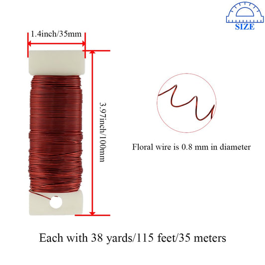 HAHIYO 22Gauge Red Metal Floral Wire - 1 Roll, 38 Yards (115 Feet) - Flexible Paddle Wire for Craft, Christmas Wreath, Flower Arrangement, Bouquet Wrapping, Wedding, DIY