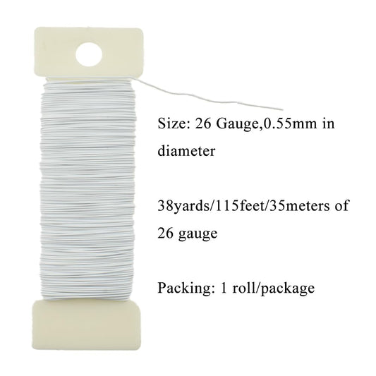 HAHIYO 26Gauge White Metal Floral Wire - 1 Roll, 38 Yards (115 Feet) - Flexible Paddle Wire for Crafts, Christmas Wreaths, Tree & Flower Arrangement