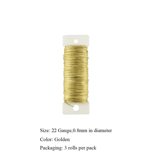 HAHIYO 22Gauge Golden 3Roll Total 115Yards(345Feet) Metal Floral Wire Flexible Paddle Wire for Crafts Christmas Wreaths Tree Flower Arrangement Bouquet Wrapping Wedding DIY