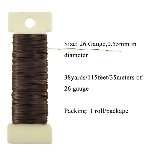 HAHIYO 26Gauge Coffee Color Metal Floral Wire - 1 Roll, 38 Yards (115 Feet) - Flexible Paddle Wire for Craft, Christmas Wreath, Flower Arrangement, Bouquet Wrapping, Wedding, DIY