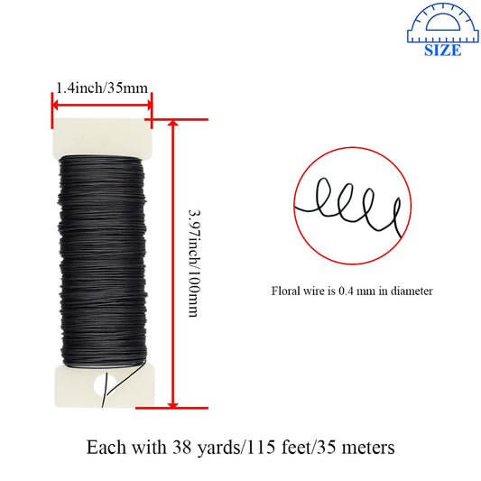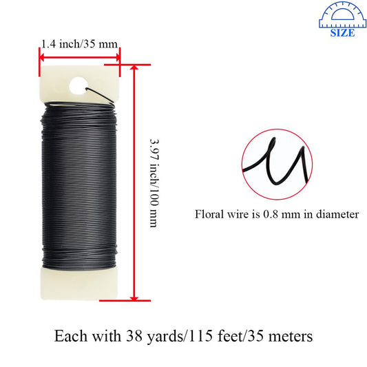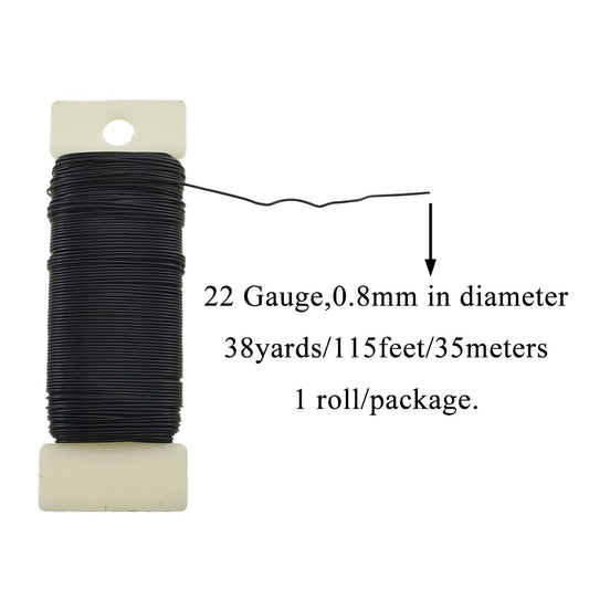 HAHIYO 22Gauge Black Wire - 1Roll, 38Yards (115Feet) Flexible Floral Wire for Crafts, Christmas Wreaths, Tree & Flower Arrangement, Wedding DIY