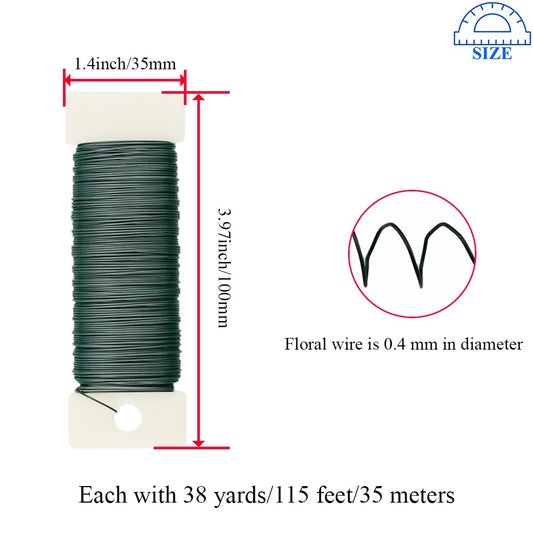 HAHIYO 22Gauge Green Flexible Metal Floral Wire - 1 Roll, 38 Yards (115 Feet) for Crafts, Christmas Wreaths, Tree & Flower Arrangement, Wedding DIY