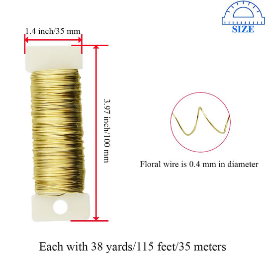 HAHIYO 22Gauge Dark Gold Metal Floral Wire - 1 Roll, 38 Yards (115 Feet) - Flexible Paddle Wire for Craft, Christmas Wreaths, Tree, Flower Arrangement, Bouquet Wrapping, Wedding, DIY