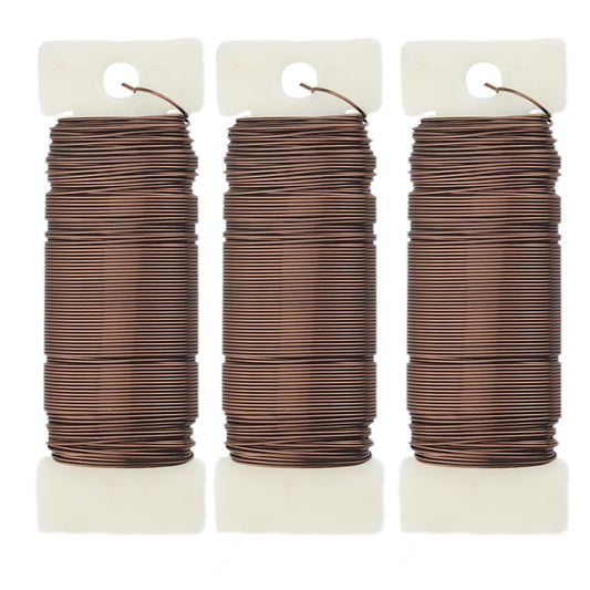 HAHIYO 22Gauge Coffee Color Metal Floral Wire - 3 Rolls, 115Yards (345Feet) - Flexible Paddle Wire for Craft, Christmas Wreath, Flower Arrangement, Bouquet Wrapping, Wedding DIY