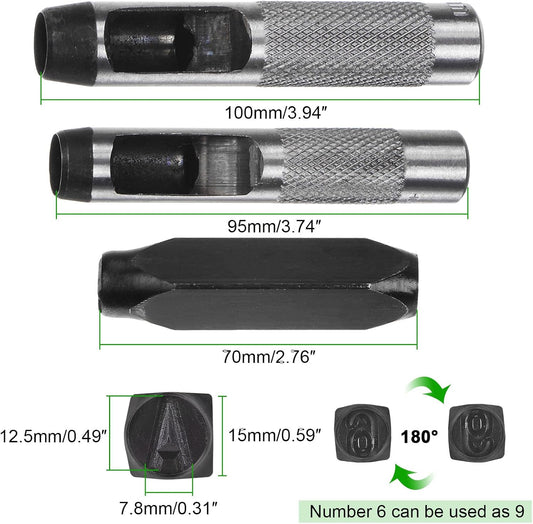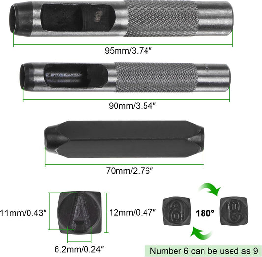 HARFINGTON 36pcs Metal Stamping Kit 1/2" (12.5mm) (A-Z, 0-8, "&" Symbol) Steel Letter Punch Press Tool with Hole Punch to Stamp on Metal, Plastic, Wood, Leather, Black