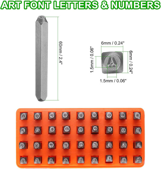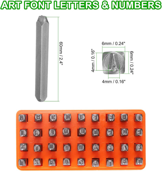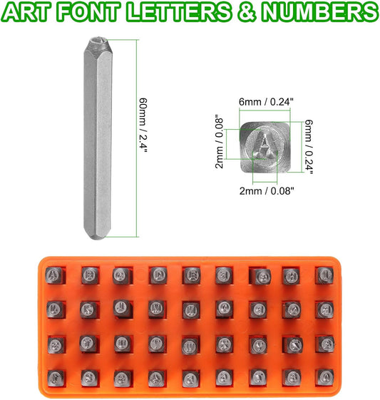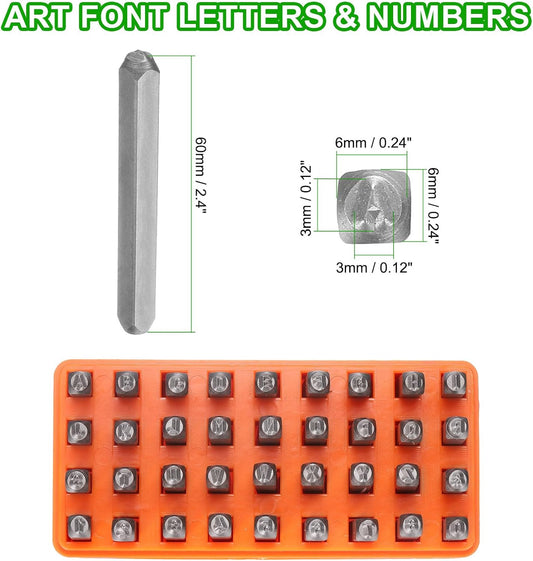 HARFINGTON 36pcs Metal Stamping Kit 1/4" (6mm) Steel Uppercase Letter and Number Punch Set (A-Z / 0-8 / "&" Symbol) Punch Press Tool with Case for Imprinting Metal Plastic Wood Leather