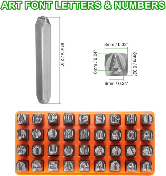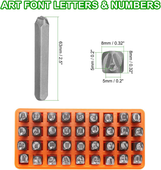 HARFINGTON 36pcs Metal Stamping Kit 5/16" (8mm) Steel Uppercase Letter and Number Punch Set (A-Z / 0-8 / "&" Symbol) Punch Press Tool with Case for Imprinting Metal Plastic Wood Leather