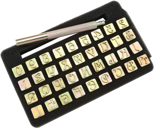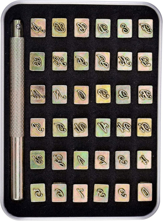Yoption 37 Pieces Leathercarft Stamping Tool Set, 6mm Alphabet Letters and Numbers Stamps Leather Craft Stamping Tools with Gift Box