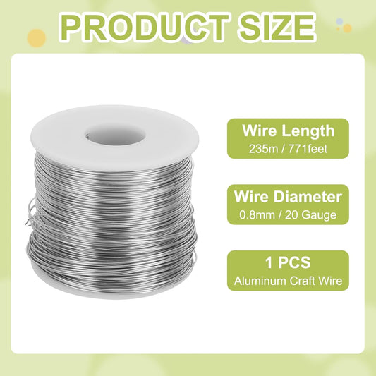 MECCANIXITY 20 Gauge Anodized Aluminum Craft Wire Bendable Bonsai Training Wire 771 Feet 0.8mm for Sculpting Crafts Wreath Floral Beading Jewelry Making, Silver Tone