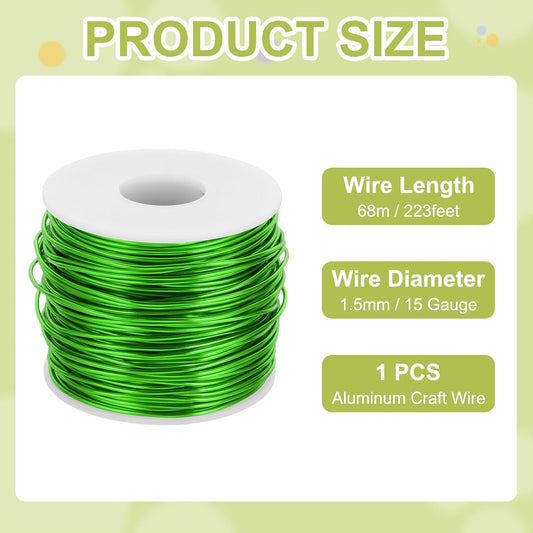 MECCANIXITY 15 Gauge Anodized Aluminum Craft Wire Bendable Bonsai Training Wire 223 Feet 1.5mm for Sculpting Crafts Wreath Floral Beading Jewelry Making, Green