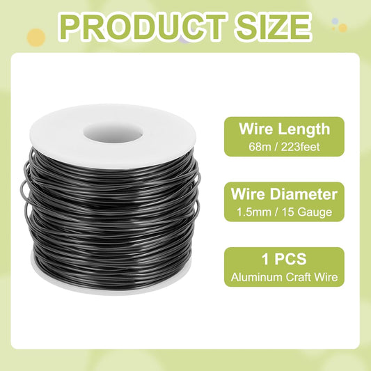 MECCANIXITY 15 Gauge Anodized Aluminum Craft Wire Bendable Bonsai Training Wire 223 Feet 1.5mm for Sculpting Crafts Wreath Floral Beading Jewelry Making, Black