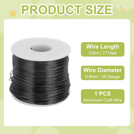 MECCANIXITY 20 Gauge Anodized Aluminum Craft Wire Bendable Bonsai Training Wire 771 Feet 0.8mm for Sculpting Crafts Wreath Floral Beading Jewelry Making, Black
