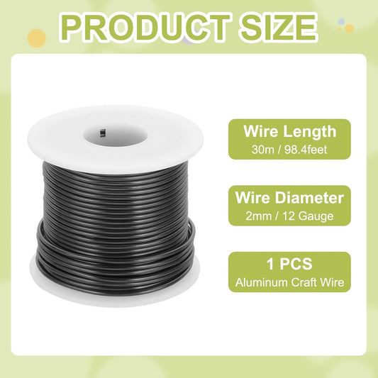 MECCANIXITY 12 Gauge Anodized Aluminum Craft Wire Bendable Bonsai Training Wire 98 Feet 2mm for Sculpting Crafts Wreath Floral Beading Jewelry Making, Black