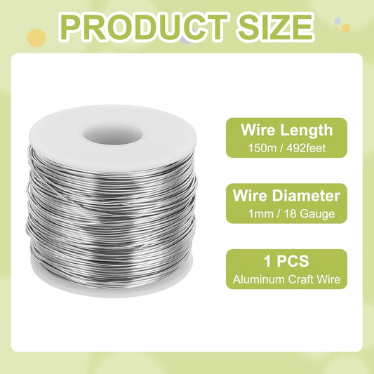 MECCANIXITY 18 Gauge Anodized Aluminum Craft Wire Bendable Bonsai Training Wire 492 Feet 1mm for Sculpting Crafts Wreath Floral Beading Jewelry Making, Silver Tone