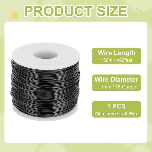 MECCANIXITY 18 Gauge Anodized Aluminum Craft Wire Bendable Bonsai Training Wire 492 Feet 1mm for Sculpting Crafts Wreath Floral Beading Jewelry Making, Black