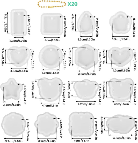 16Pcs Keychain Resin Molds Silicone with Hole, Jewelry UV Resin Keychain Molds, Epoxy Resins Mold for Keychains Pendant Jewelry Making