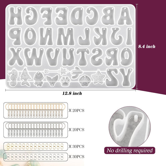Actvty Alphabet Resin Mold, Reversed Alphabet Silicone Molds with Holes for Epoxy, Letter Molds for Resin DIY Keychain Jewelry Pendant