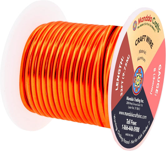 Mandala Crafts 8 Gauge Anodized Aluminum Craft Wire for Jewelry Making - 32 FT Colored Flexible Burnt Orange Wire - Bendable for Bonsai Armature Crafting Sculpting