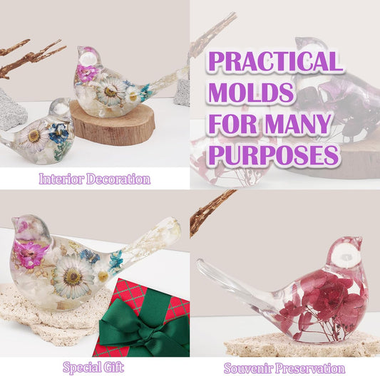 2Pcs Bird Resin Molds, Bird Silicone Epoxy Molds, 3D Animal Resin Silicone Molds for Resin Casting, DIY Crafts, Indoor Desktop Decor
