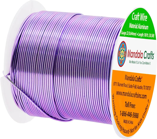 Mandala Crafts 22 Gauge Anodized Aluminum Craft Wire for Jewelry Making - 100 FT Colored Flexible Lavender Wire - Bendable for Bonsai Armature Crafting Sculpting