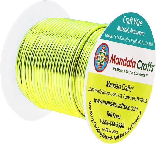 Mandala Crafts 14 Gauge Anodized Aluminum Craft Wire for Jewelry Making - 60 FT Colored Flexible Yellow Green Wire - Bendable for Bonsai Armature Crafting Sculpting