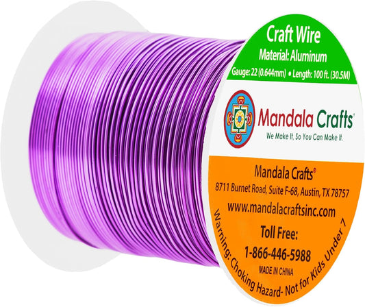 Mandala Crafts 22 Gauge Anodized Aluminum Craft Wire for Jewelry Making - 100 FT Colored Flexible Violet Wire - Bendable for Bonsai Armature Crafting Sculpting