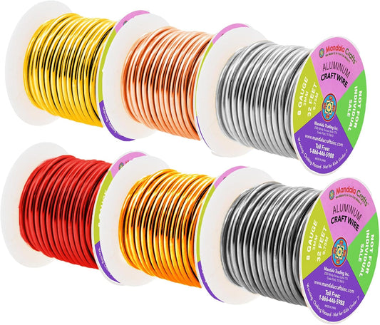 Mandala Crafts 8 Gauge Anodized Aluminum Craft Wire for Jewelry Making - 120 FT Colored Flexible Silver Copper Light Gold Gray Gold Red Wire - Bendable for Bonsai Armature Crafting Sculpting