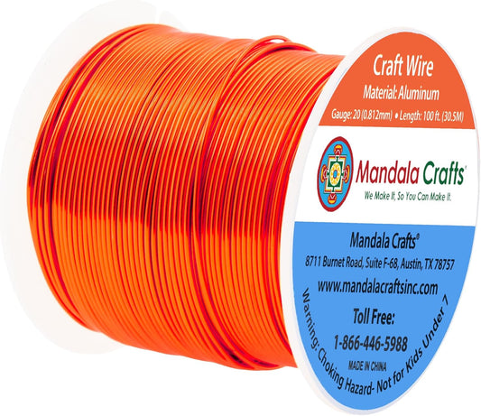Mandala Crafts 16 Gauge Anodized Aluminum Craft Wire for Jewelry Making - 100 FT Colored Flexible Orange Wire - Bendable for Bonsai Armature Crafting Sculpting