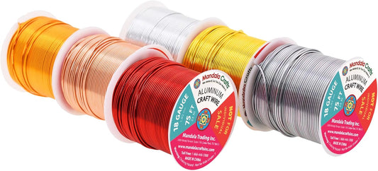 Mandala Crafts 18 Gauge Anodized Aluminum Craft Wire for Jewelry Making - 450 FT Colored Flexible Silver Copper Light Gold Gray Gold Red Wire - Bendable for Bonsai Armature Crafting Sculpting