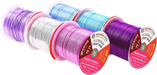 Mandala Crafts 20 Gauge Anodized Aluminum Craft Wire for Jewelry Making - 450 FT Colored Flexible Silver Lavender Purple Pink Ice Blue Turquoise Wire - Bendable for Bonsai Armature Crafting Sculpting