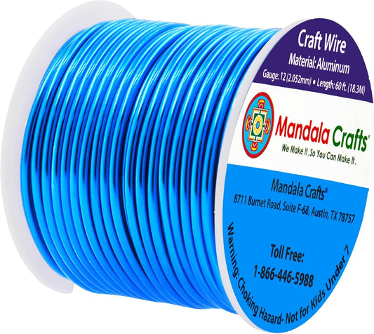 Mandala Crafts 12 Gauge Anodized Aluminum Craft Wire for Jewelry Making - 60 FT Colored Flexible Bondi Blue Wire - Bendable for Bonsai Armature Crafting Sculpting