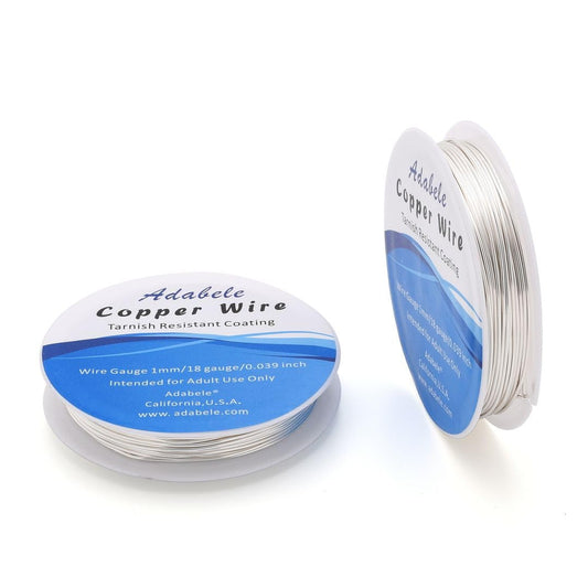 Adabele 65 Feet Premium Tarnish Resistant Round Jewelry Wire Copper Beading Wire Spool Bulk (1mm/18 Gauge) Sterling Silver Plated for DIY Craft Jewelry Making BF285-10