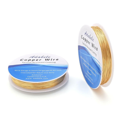 Adabele 147 Feet Premium Tarnish Resistant Round Jewelry Wire Copper Beading Wire Spool Bulk (0.5mm/24 Gauge) 18K Gold Plated for DIY Craft Jewelry Making BF286-5
