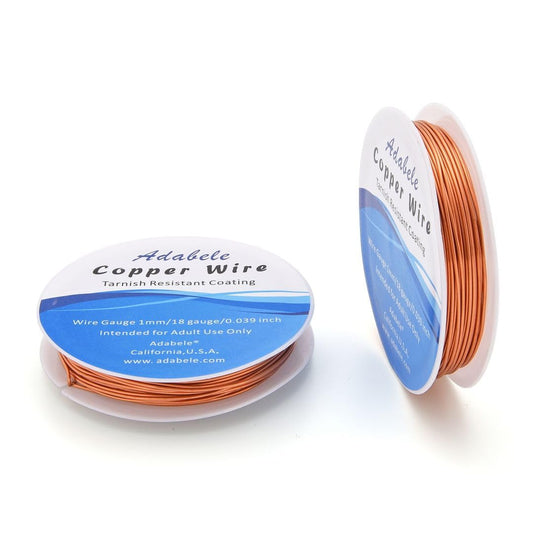 Adabele 32 Feet Premium Tarnish Resistant Round Bare Raw Jewelry Copper Wire Beading Wire Spool Bulk (1mm/18 Gauge) for DIY Craft Jewelry Making BF287-10