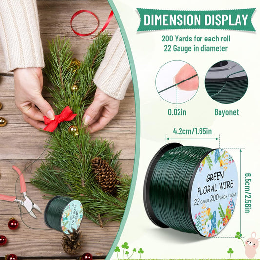 Floral Wire 22 Gauge Flower Wire for Craft, 200 Yards Green Flexible Paddle Florist Wires for Flower, Green Florist Wires Christmas Wreaths Tree, Garland Floral Flowers Arrangements, and Wreath Frame