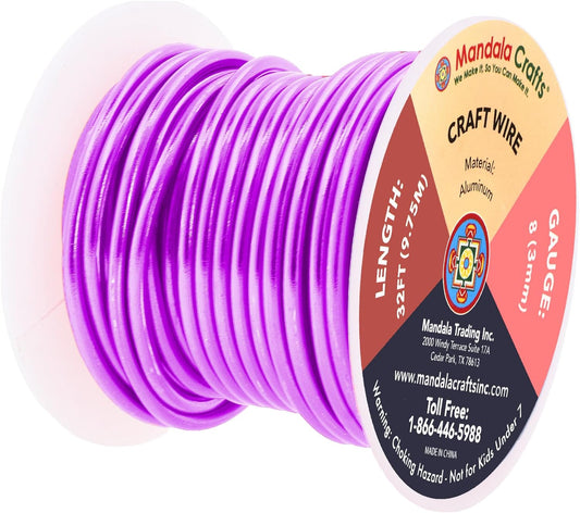 Mandala Crafts 8 Gauge Anodized Aluminum Craft Wire for Jewelry Making - 32 FT Colored Flexible Violet Wire - Bendable for Bonsai Armature Crafting Sculpting