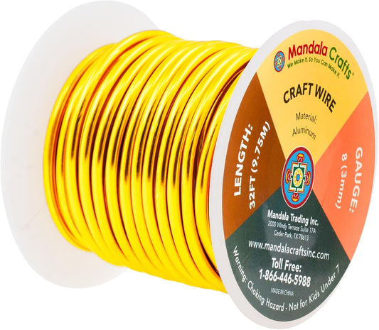 Mandala Crafts 8 Gauge Anodized Aluminum Craft Wire for Jewelry Making - 32 FT Colored Flexible Light Gold Wire - Bendable for Bonsai Armature Crafting Sculpting