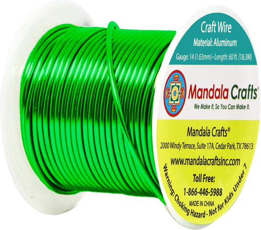Mandala Crafts 14 Gauge Anodized Aluminum Craft Wire for Jewelry Making - 60 FT Colored Flexible Kelly Green Wire - Bendable for Bonsai Armature Crafting Sculpting