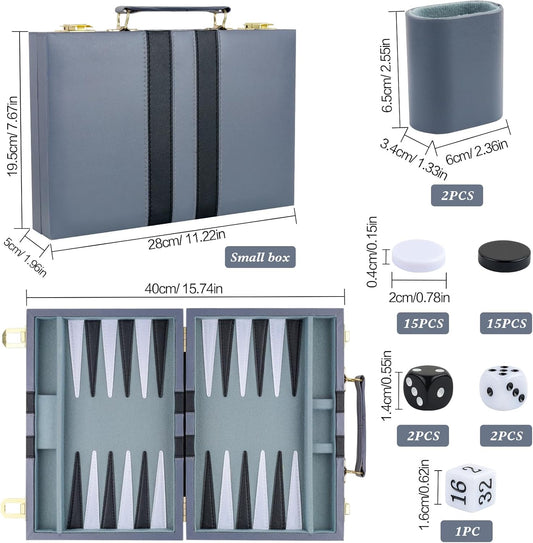 Backgammon Set 2 Players Classic Backgammon Sets for Adults Board Game with PU Leather Case Portable and Travel Backgammon Set (Grey, 11inch)
